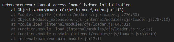 첫 console.log의 name은 선언되지 않았다. 하지만 자바스크립트에선 에러가 나지 않는다.