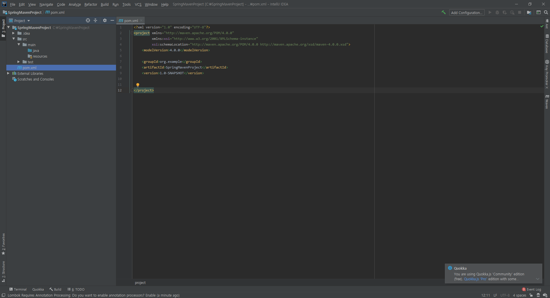 pom.xml에 라이브러리 의존성 설정, 빌드 설정등을 해줍니다.