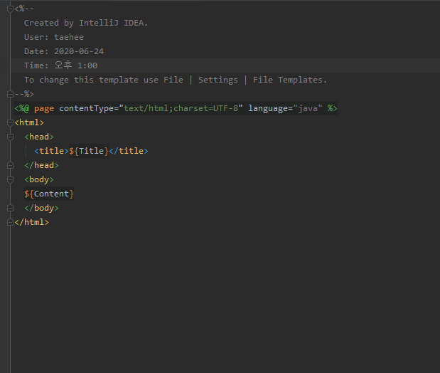 기존에 생성된 index.jsp 파일의 내용을 변경해 줍니다.