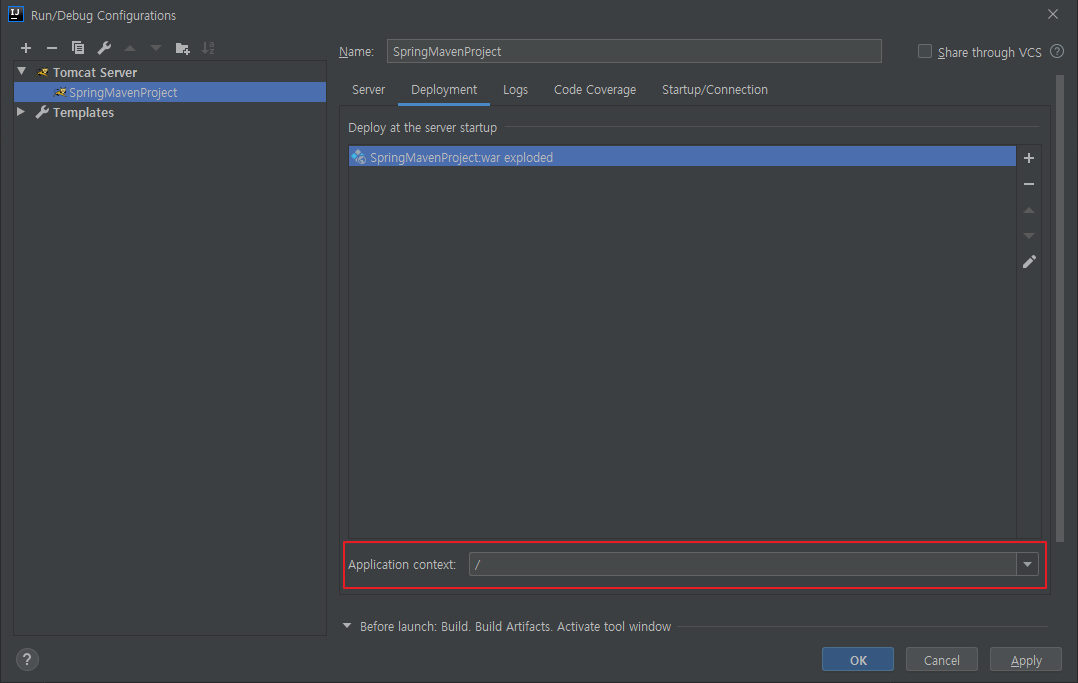 Deployment 탭에 들어가서 Application context를 /로 바꿔주세요.